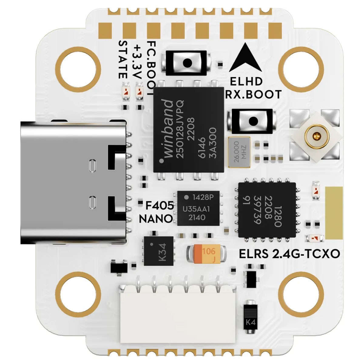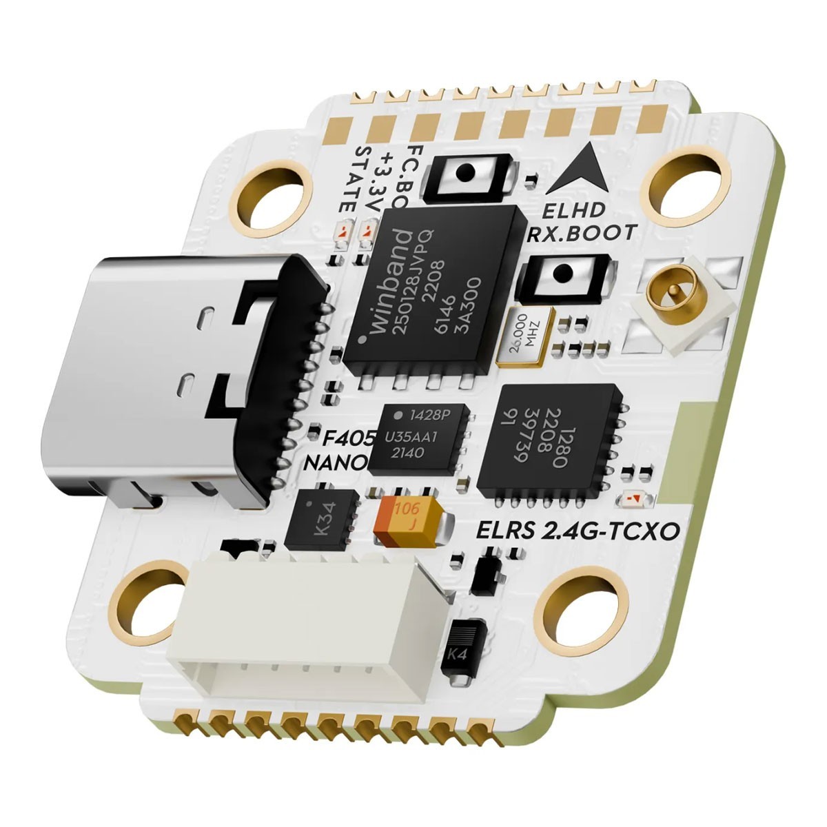 È importante sottolineare che questo flight controller è dotato di un ricevitore TCXO ELRS ad alta precisione, che lo rende una soluzione ideale per risparmiare spazio nei micro droni.