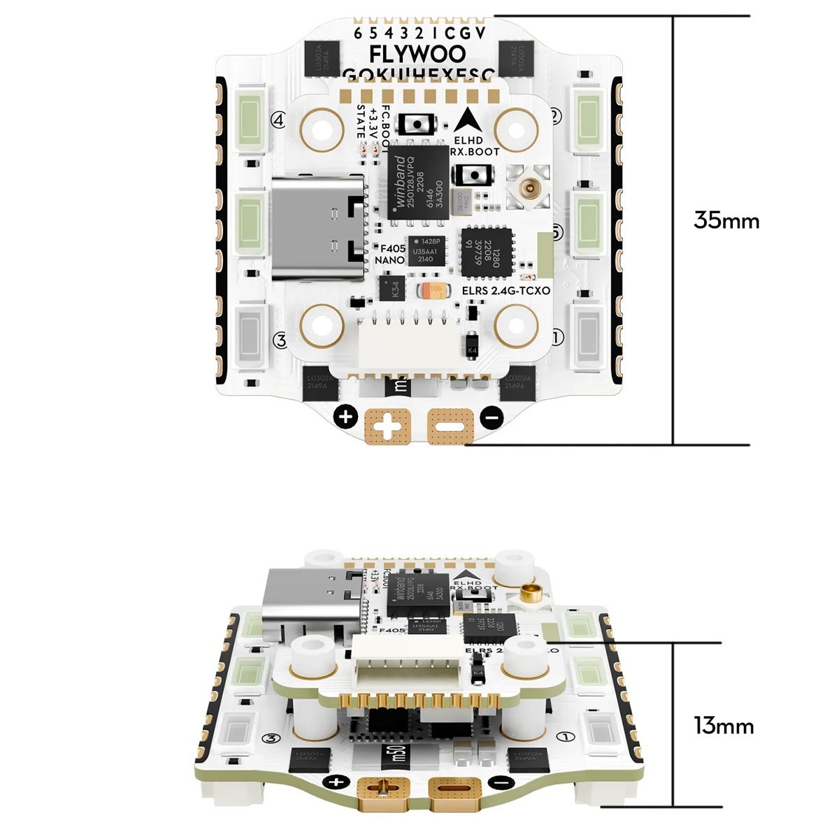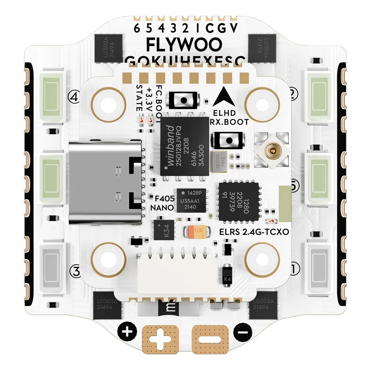 Il nuovo Flywoo HEX GOKU GN405 Nano FC V3 w ELRS 2.4g è compatto e presenta una porta universale USB-C compatibile con gli attuali cavi dati mainstream.
