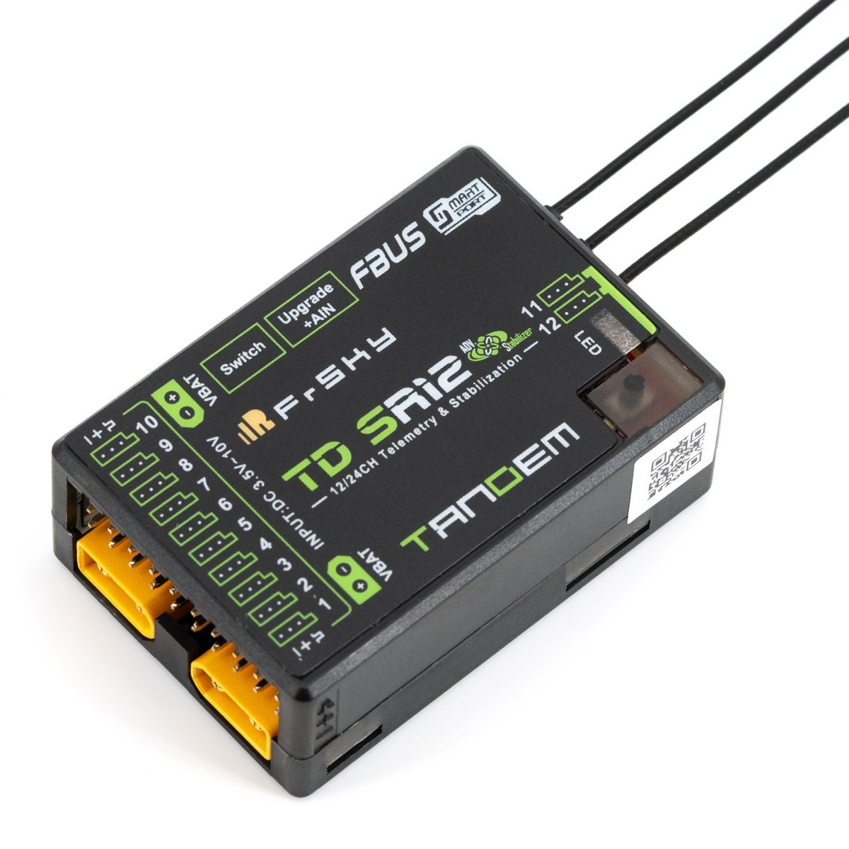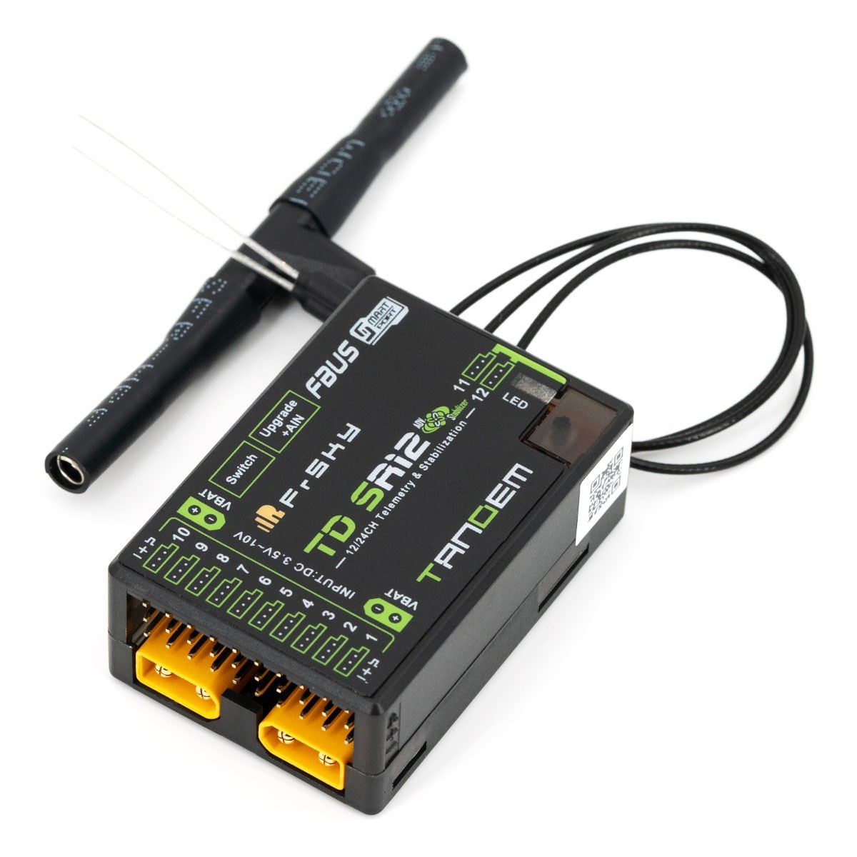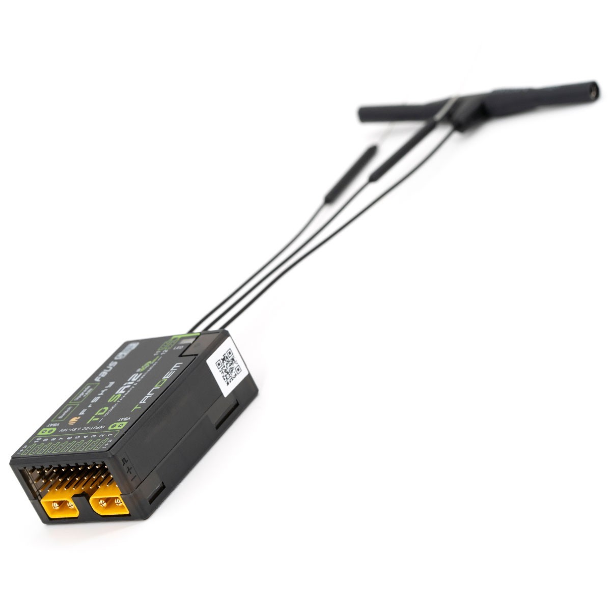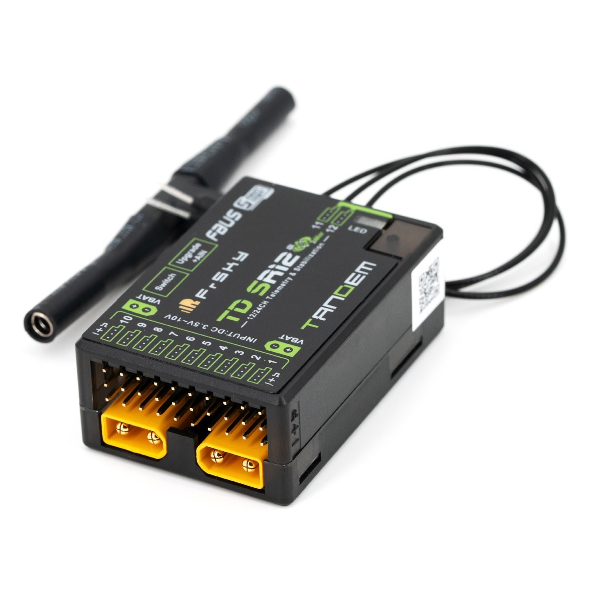 Il ricevitore TD R12 è dotato di un design a tripla antenna (2 × 2,4 G e 1 × 900 M) che fornisce un'ampia copertura multidirezionale per il segnale remoto ed è progettato per gli utenti RC che desiderano beneficiare della resilienza e del lungo raggio nel loro comunicazioni radio.
