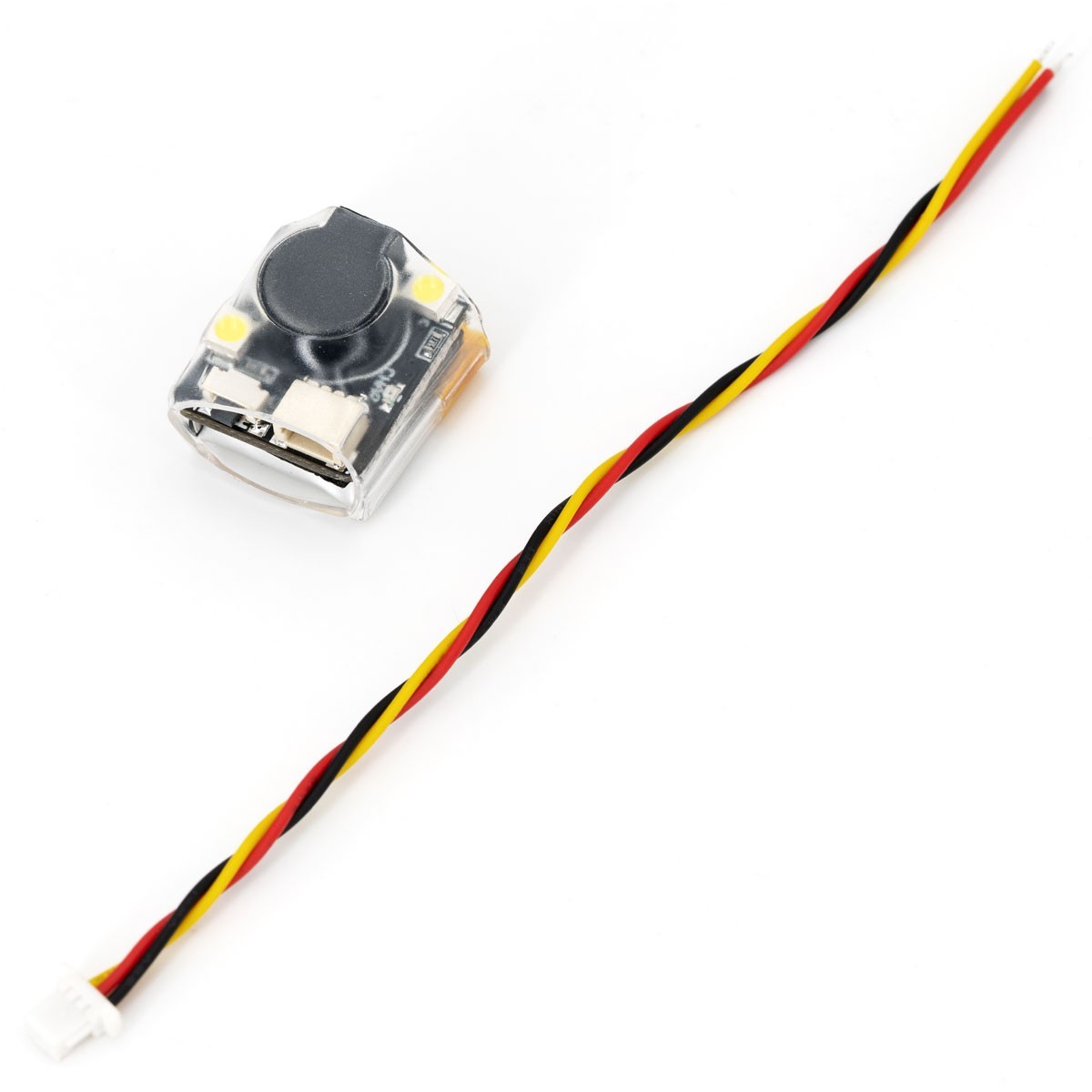 Quando è collegato normalmente al controller di volo e la batteria principale del drone è collegata, il funzionamento è identico ai buzzer classici, se invece la batteria del drone viene scollegata o si stacca durante il crash, il buzzer grazie alla batteria integrata emette automaticamente 110dB di suono (più forte rispetto al cicalino generale) dopo 30 secondi di interruzione dell'alimentazione e il LED emette luce bianca.