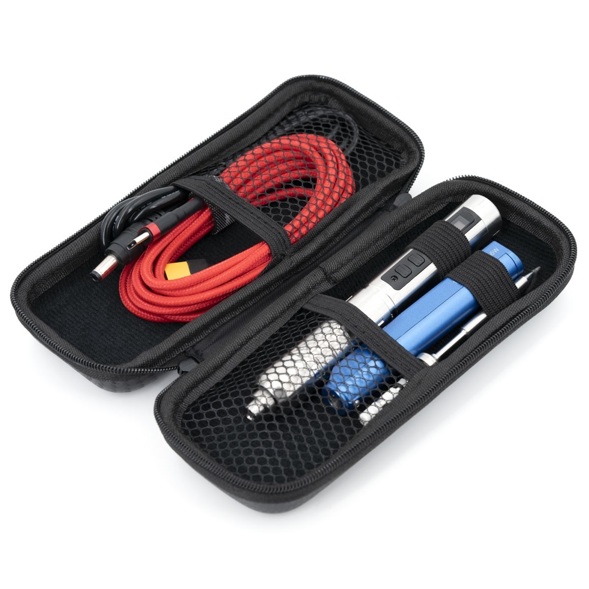Questa piccola custodia può contenere saldamente 1 saldatore elettrico SQ-001/SQ-D60B/TS100-TS-80, 2 punte di saldatura, 1 batteria 4S e cavo di alimentazione.