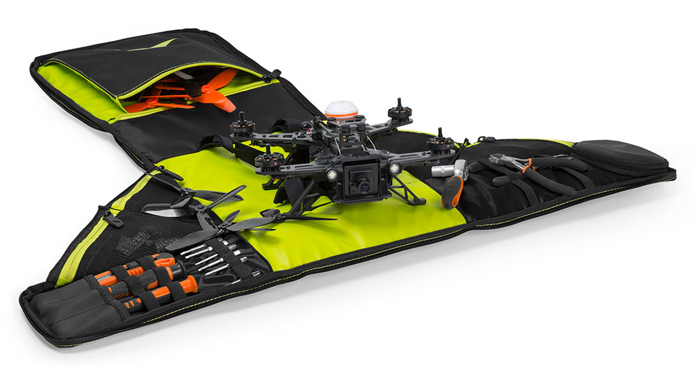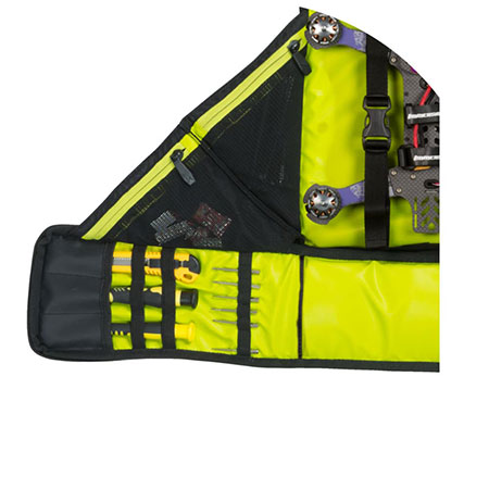 Aprilo completamente per trasformare la tua borsa in una comoda area PITSTOP per perfezionare e riparare il tuo drone.